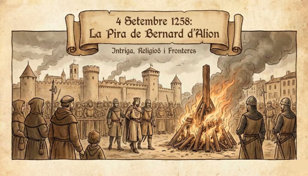 Això no és només una pira, és un punt d’inflexió. L’any és 1258, i Occitània és l’escenari d’una partida d’escacs política i religiosa que té en joc la sobirania mateixa dels territoris fronterers. La història de Bernard d’Alion, senyor d’Usson, no és la d’un heretge aïllat, sinó la d’un peó sacrificat en el moment exacte en què les grans potències —França i la Corona d’Aragó— finalment decideixen traçar la línia vermella.