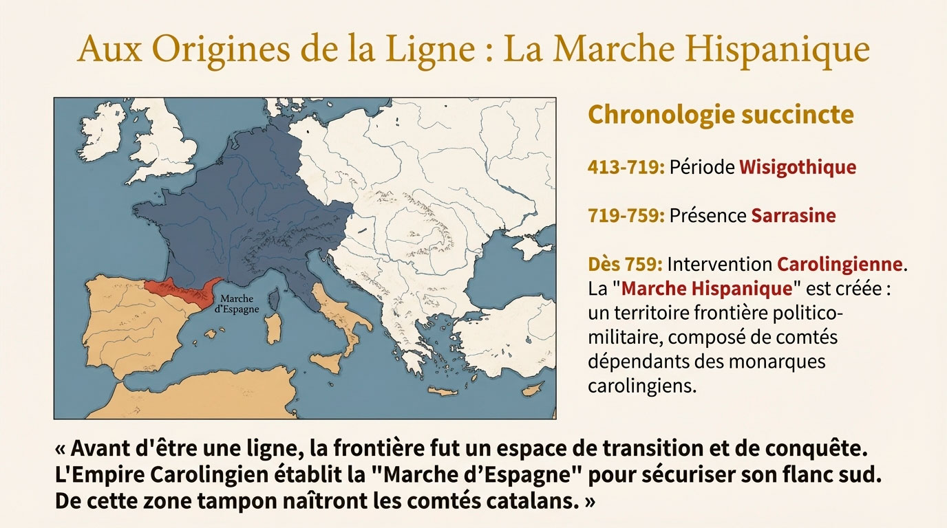 Après les Wisigoths et les Sarrasins, les Carolingiens créent une zone tampon.
